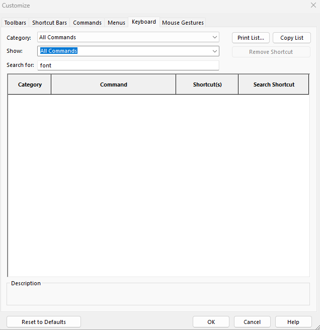 In SolidWorks 2025, are there shortcut keys, or a way to program a shortcut keys, to incrementally increase and decrease the font size of, for example, an annotation on a drawing?