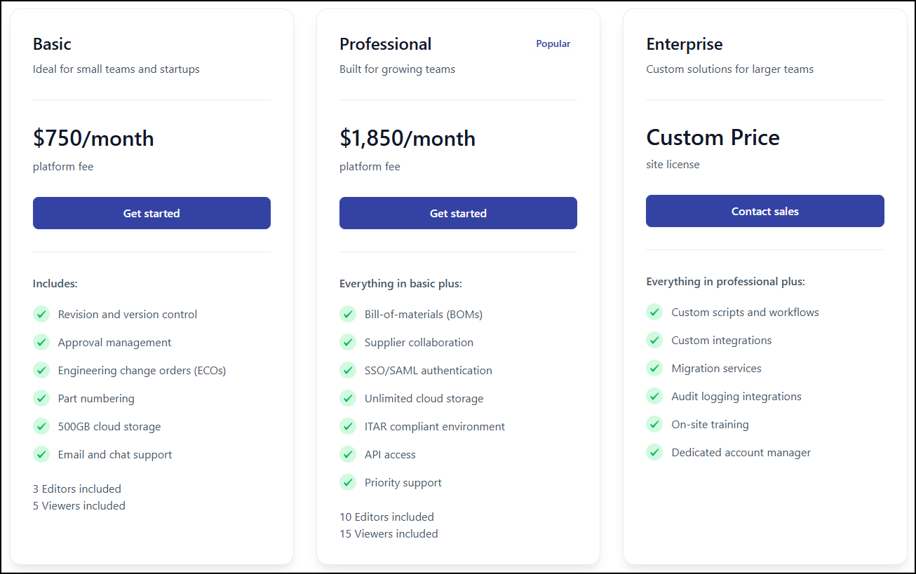 I think for smaller teams, pricing is ok. It’s difficult to compare as pricing is not apples to apples. Bild Pro is 10 editors and 15 viewers, named user. PDM Pro licensing is floating, so you might not need 10 cad editor licenses and 15 viewers, maybe 5-7 cad editors and 10 viewers, just depends on if your team is in the system daily or doing other things.