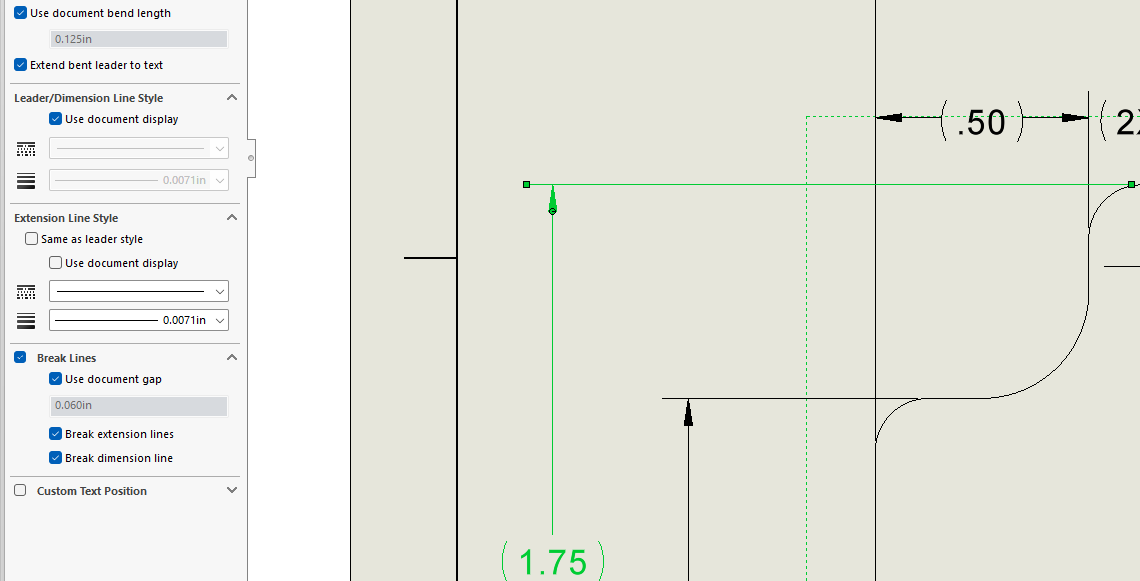 ok at a new place and they want broken extension lines, so I check the Break lines dialog and still nothing breaks, wondering if it is a video card thing or what I am doing incorrectly.