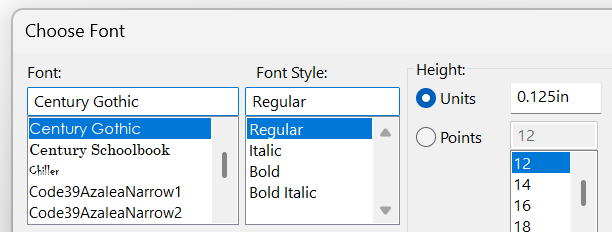 I don’t know of any off-the-shelf font selector controls that you can just drop onto the PMP, although that’s admittedly getting out of my depth. I believe you’d have to end up programming them from scratch. Or, you may be able to make a button that will open the Windows Common Dialog font selector. Heck, SW itself makes you open up a font dialog rather than giving you selectors in its own PMP…