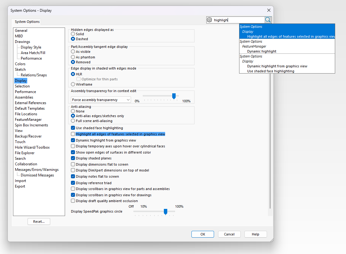 I should know better than to willy nilly toggle more than one setting in SolidWorks after all these years.