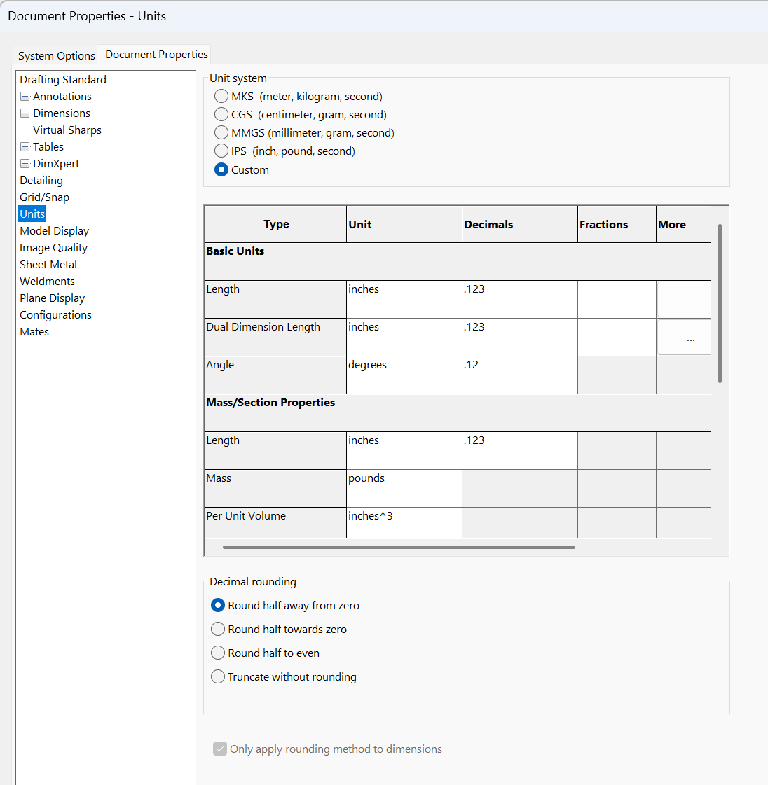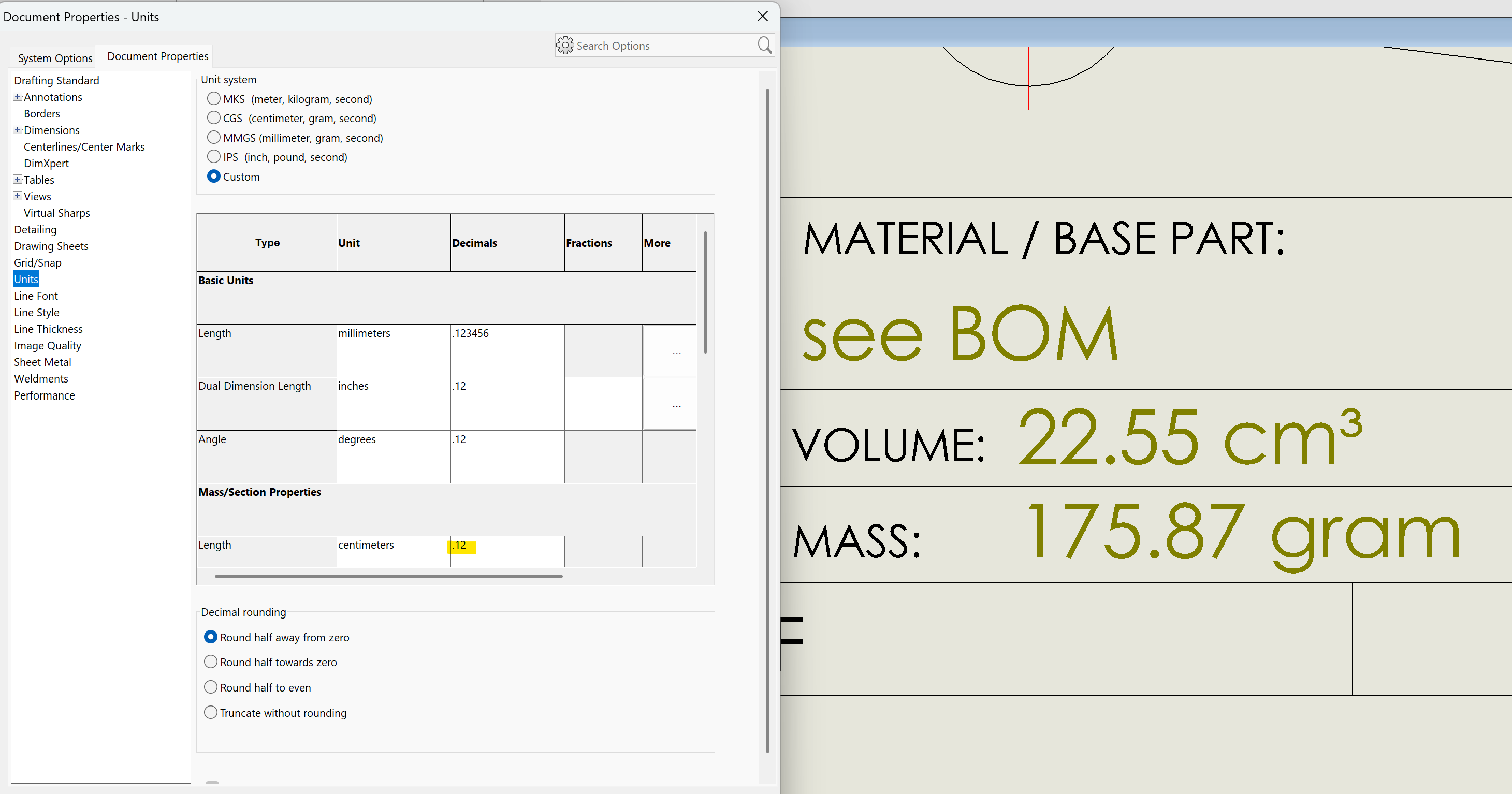 If, in an .SLDDRW, I link to the property “SW-Mass@xxx.xxxxxx” (Property name “Weight”), for example, the value appears in 3 decimal places. How would I go about controlling the number of decimal places?