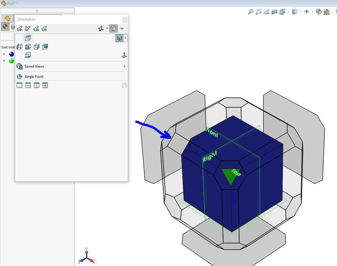 I like Onshapes and Inventors view cubes, I wish SolidWorks would replace the lower left triad with something similar. The SolidWorks spacebar dynamic view selector cube is a mixed bag. Its actually really good except on really big assemblies its sluggish and slightly disorienting with its zoom out in perspective mode behavior.
