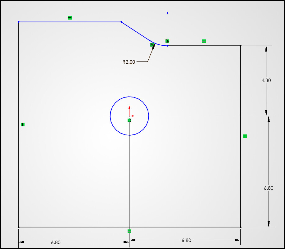 That sketch you have shown in SolidWorks shows everything you could possible need to know on what isn’t constrained, what is and what needs to be done to fully constrain.