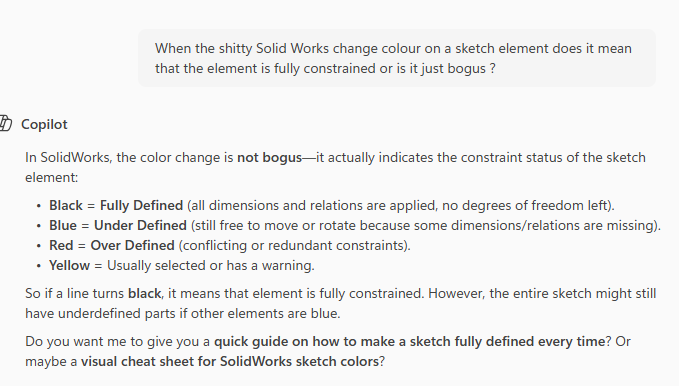 I think it really boils down whatever the user is most familiar with and muscle memory. I’m not constantly in Solidworks, I’m still struggling with why it wants to select things that have nothing to do with what I’m trying to accomplish. I still need to learn those other tools.