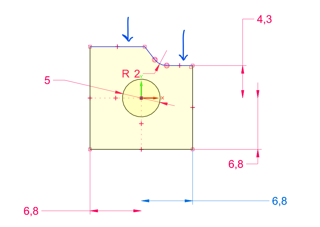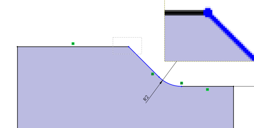 Its zoomed in just to show the tiny pixel that should tell the user that line is not fully constrained.