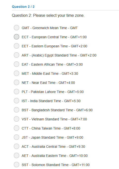 I selected GMT and also completed the soul searching survey after 2 questions.