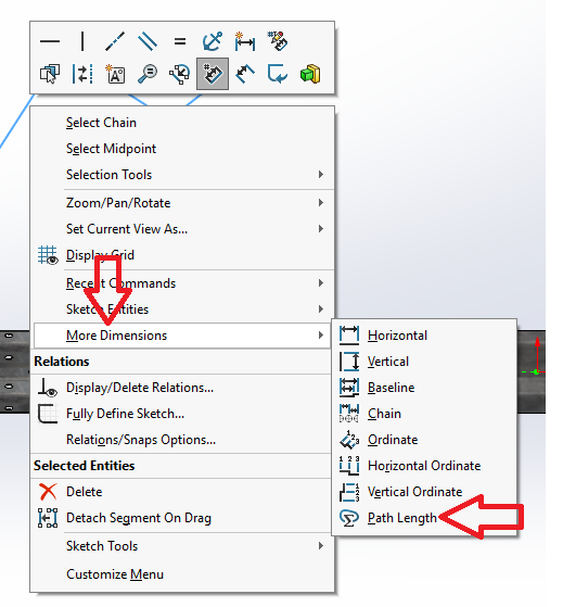 I saw in the help there is a path dimension available in sketch mode where you can click on a line/arc and get the total length. I tired to do it on a drawing and it doesn’t work. I was wondering if anyone has tried it or has a way to give a dimension along a path?