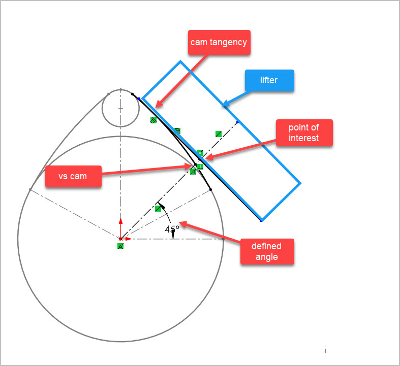 I’ve had this same issue come up & have not found a good solution. Hopefully the example makes sense. I have sketches for a [cam] profile, a sketch [ang pos] with a lifter of defined width positioned & angle, and a [trace] sketch I want to record resultant points of interest. I specify an angle, it finds tangency to the cam, then I save the point of interest, Rinse & repeat for a incremental series of angles. Ultimately I want to generate an intercept curve from points like red curve shown. The problem is if I fix the point, then increment the angle to a new position, SW gives me an error message. How do I ‘record’ them?