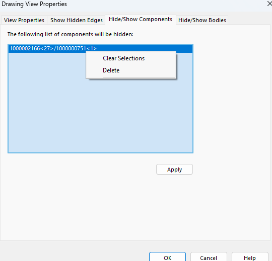 2024 sp.5 as soon as I right click there it gives me the choice to clear selections. If I pick the hidden body then I get the choice to Delete or clear selections right away on the right click.