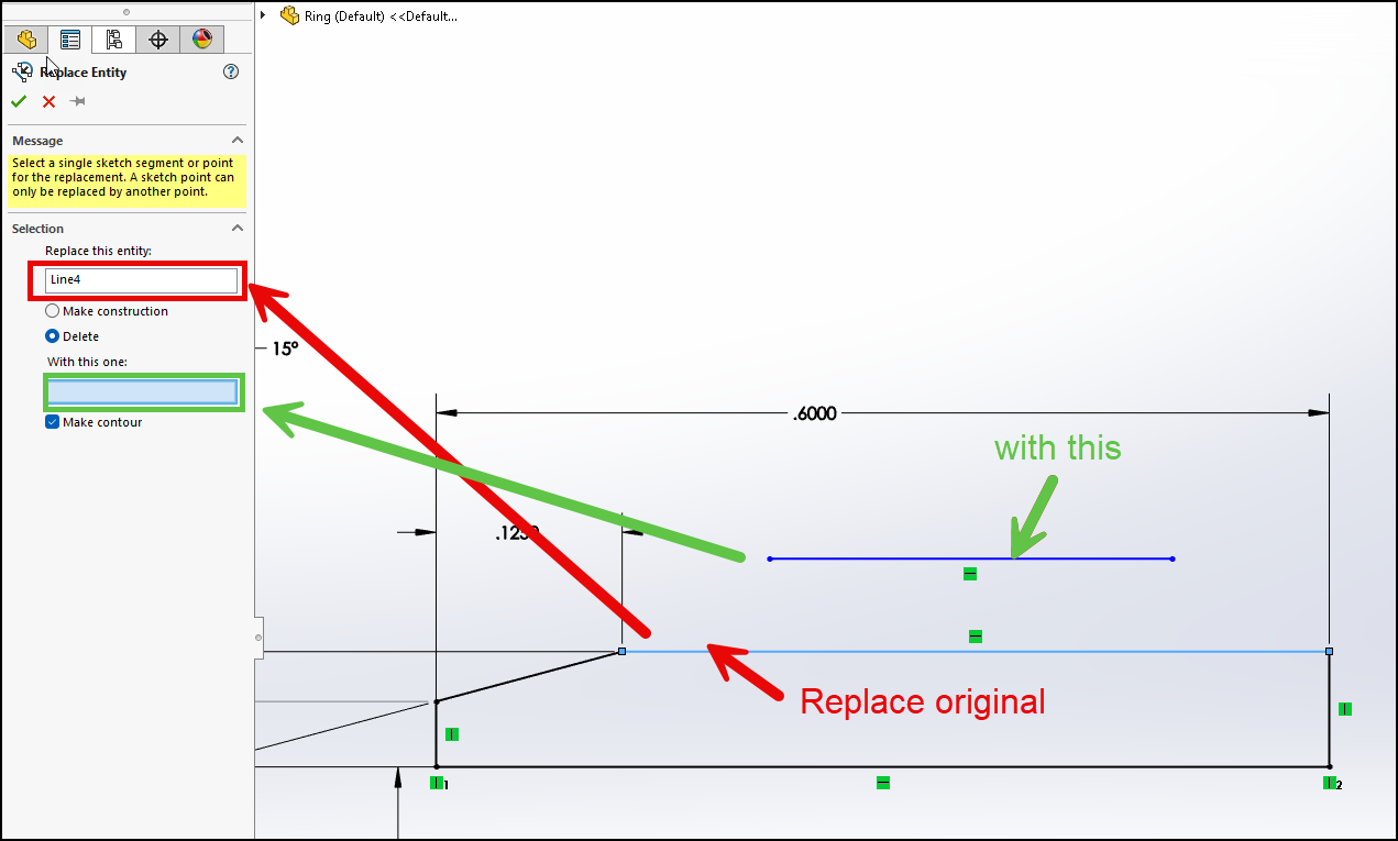 Word of caution for those that donât know, the sketch lines determine the face IDs that get created. Deleting a sketch entity and redrawing it will dangle any mates and dimensions in assemblies and drawings to those faces.
