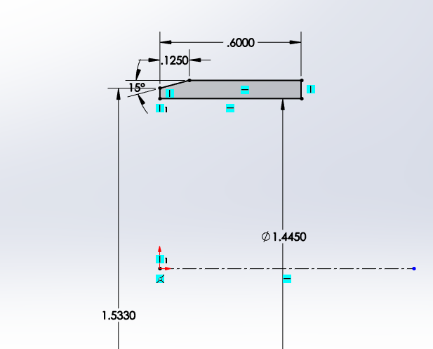 Can you drag the blue line left or right? Without seeing the relations itâs tough to tell, but it looks like you have the 2 outside lines a set distance apart but not set to anything side to side (I would assume a dim from the c-line to one of them half of 1.875 would do it)