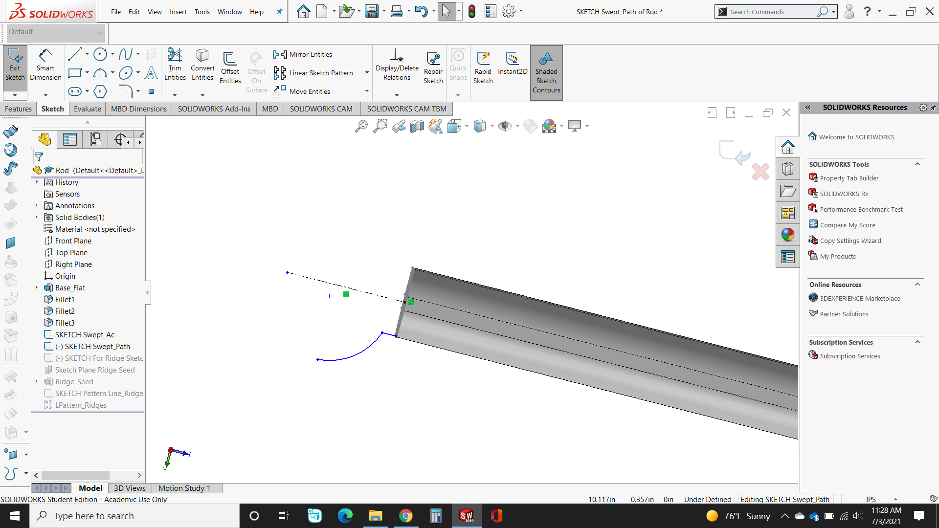 In the attached file, I’m trying to use “SKETCH Swept_Ac” & “SKETCH Swept_Path” to create a swept feature. When I try to do so, SW gives me the error message in the title. Could this be because the end of the new feature would touch the pre-existing “Base” feature, or otherwise?