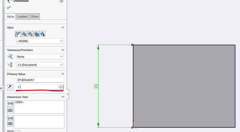 Note that once you click “OK”, the dimension will get the value of 1.