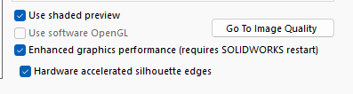 To change the display quality level for Ambient Occlusion, click Tools > Options. On the System Options tab, click Display, then select or clear Display draft quality ambient occlusion.